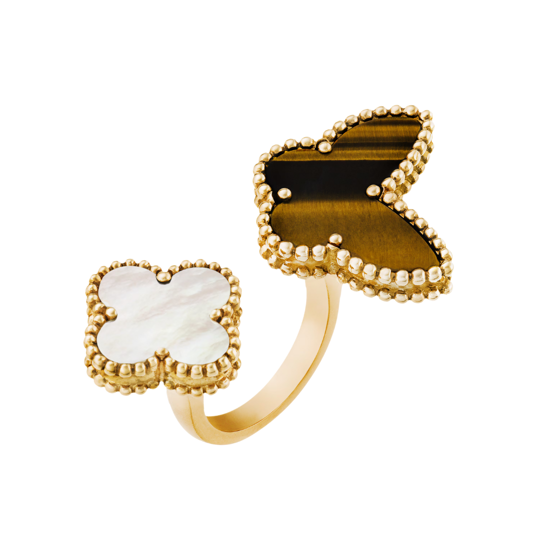 Van Cleef & Arpels Lucky Alhambra Between the Finger Ring Mother-Of-Pearl and Tiger Eye 18K Yellow Gold