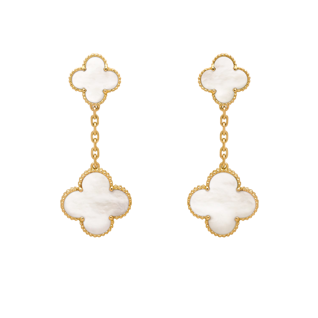 Van Cleef & Arpels Magic Alhambra Earrings 2 Motifs Mother-Of-Pearl 18K Yellow Gold