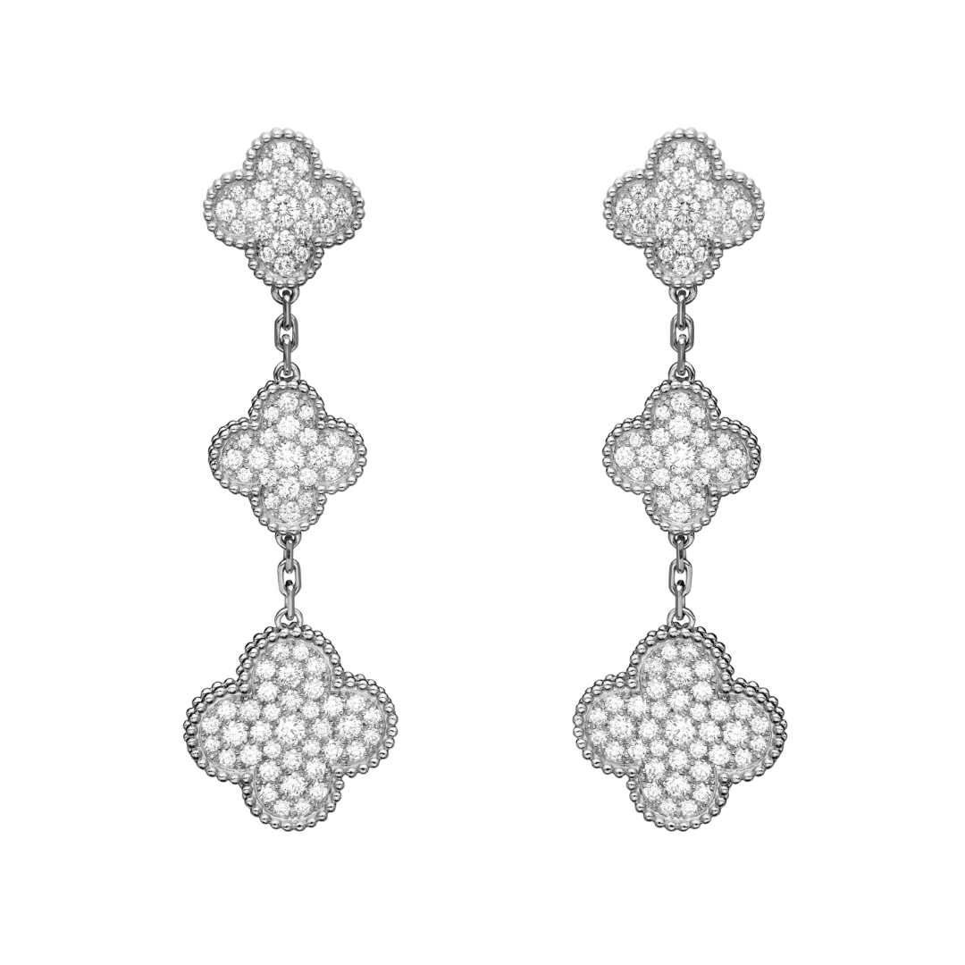 Van Cleef & Arpels Magic Alhambra Earrings 3 Motifs Diamonds 18K White Gold