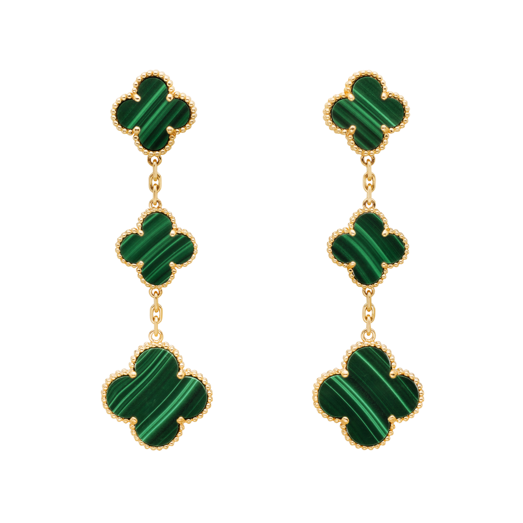 Van Cleef & Arpels Magic Alhambra Earrings 3 Motifs Malachite 18K Yellow Gold
