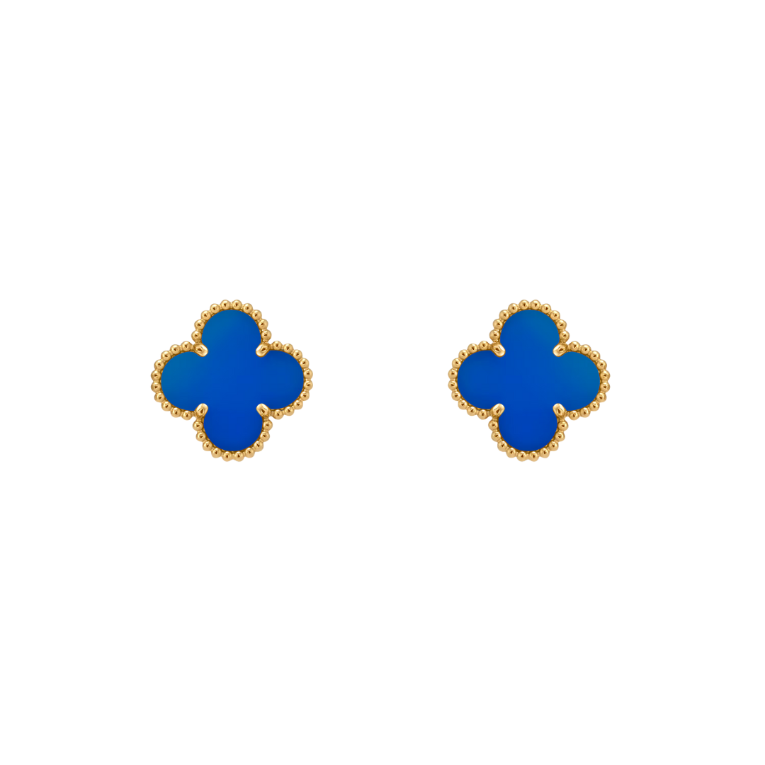 Van Cleef & Arpels Vintage Alhambra Earrings Agate 18K Yellow Gold