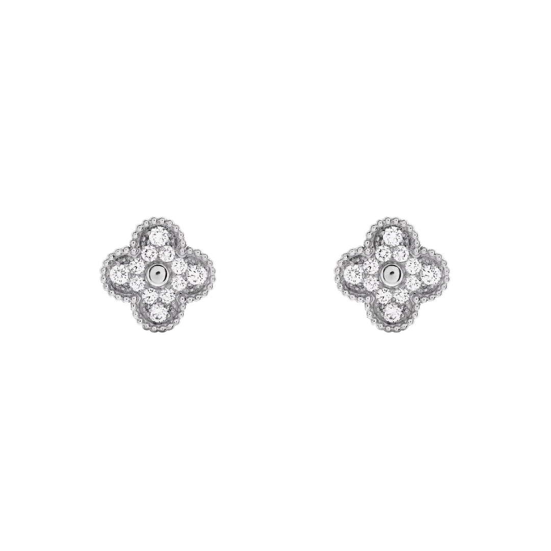Van Cleef & Arpels Vintage Alhambra Earrings Full Diamonds 18K White Gold