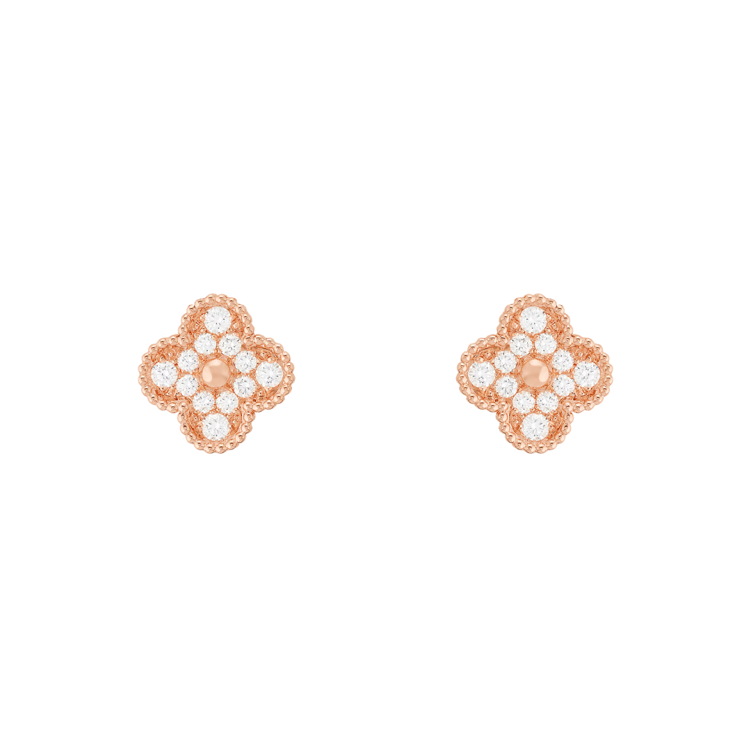 Van Cleef & Arpels Vintage Alhambra Earrings Full Diamonds 18K Yellow Gold