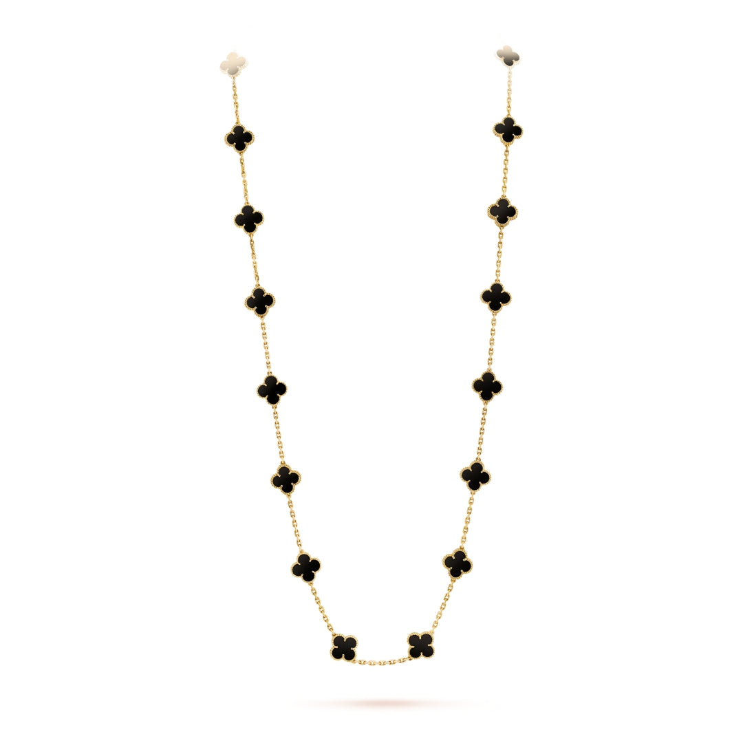 Van Cleef & Arpels Vintage Alhambra Necklace 20 Motifs Onyx 18K Yellow Gold