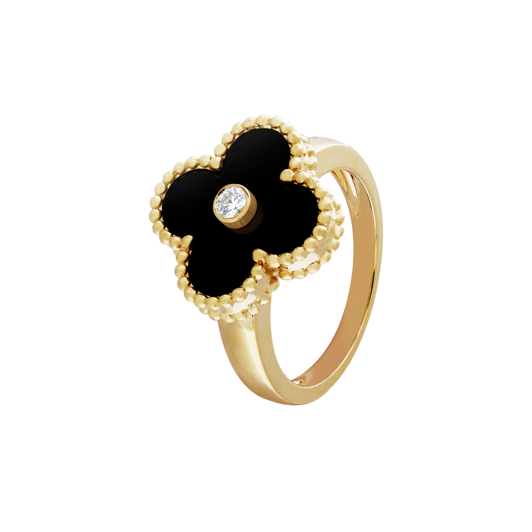 Van Cleef & Arpels Vintage Alhambra Ring 1 Diamond and Onyx 18K Yellow Gold